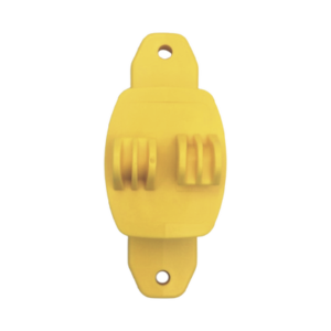 Aislador de Paso color Amarillo reforzado para cercos eléctricos, resistente al clima extremoso