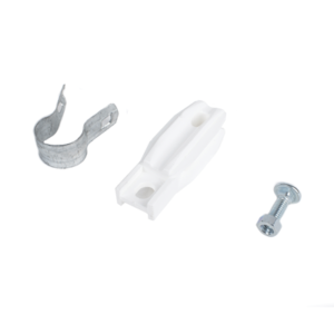 Aislador de paso o esquina de color BLANCO con abrazadera incluida de 1 Pulgada para uso en poste cerco eléctrico